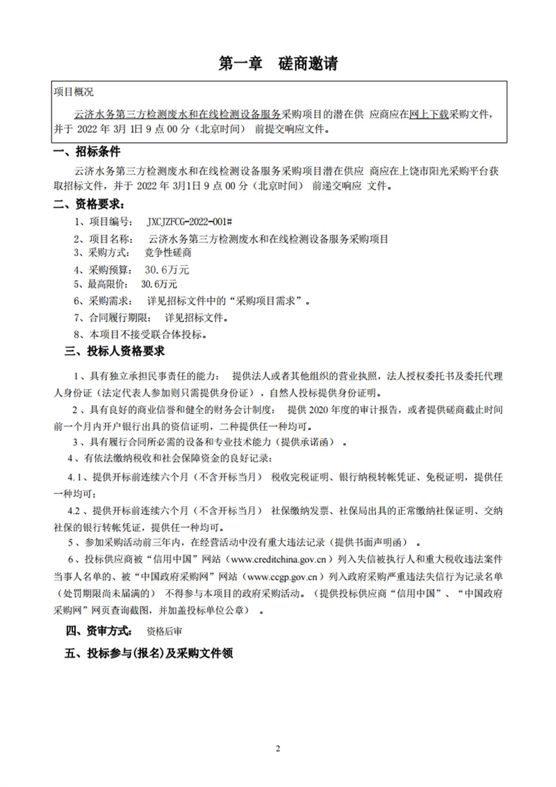 云濟(jì)水務(wù)第三方檢測廢水和在線檢測設(shè)備服務(wù)采購項目磋商文件